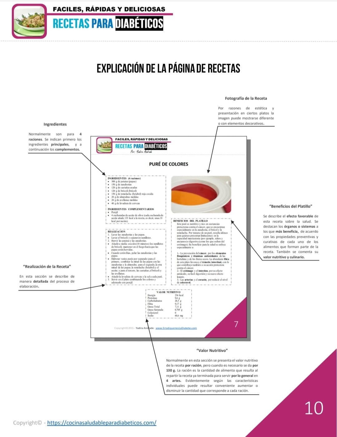Cada página de receta en nuestro ebook está diseñada para que encuentres todo lo que necesitas de un vistazo:●Ingredientes: lista clara y detallada.●Realización de la receta: pasos sencillos y numerados.●Fotografía de la receta: imagen apetitosa que te guía visualmente.●Beneficios del platillo: explica cómo apoya tu salud.●Valor nutritivo: tabla con macros y calorías para un control completo.Así, cocinar se convierte en una experiencia fácil, informada y deliciosa.